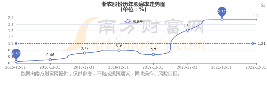 近年浙農(nóng)股份分紅情況如下表所示: