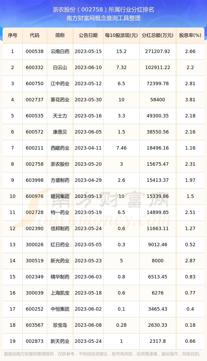 二、浙農(nóng)股份002758行業(yè)分紅排名