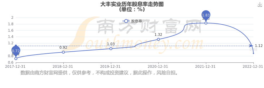 近年大豐實業(yè)年度股息率走勢如下圖: