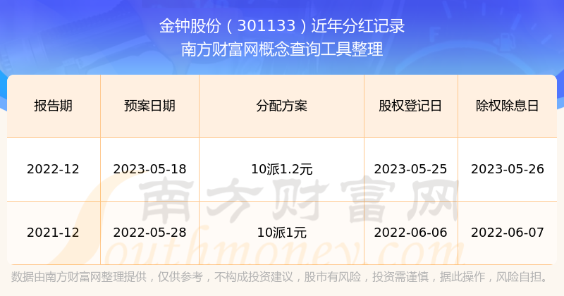 金鐘股份最新一次公布的分紅方案:10派1.2元。