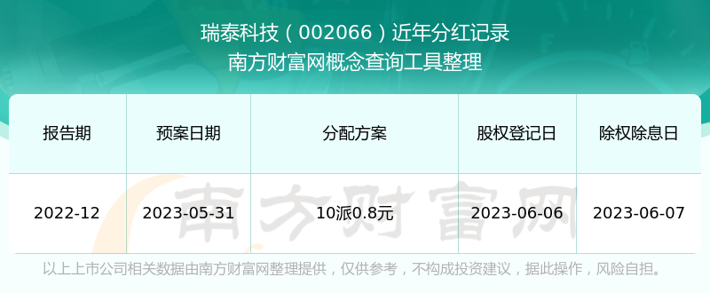 瑞泰科技最新一次公布的分紅方案:10派0.8元。