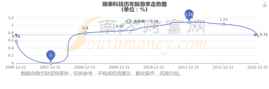 近年瑞泰科技年度股息率走勢(shì)如下圖: