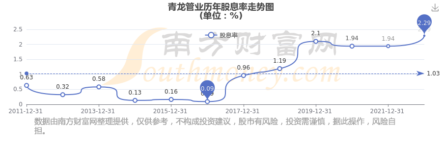 近年青龍管業(yè)年度股息率走勢如下圖: